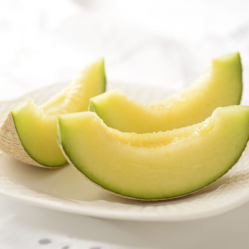 その際にイギリスから日本へ持ち帰られた、香り高い白肉系メロン「ヒーロー・オブ・ロッキンジ」の種と、緑肉系メロン「アールスフェボリット」の種とを何度も掛け合わせ、改良を重ね誕生したのが、両者の魅力を併せ持つ、上品な香りととろける甘さの「天使音マスクメロン」です。