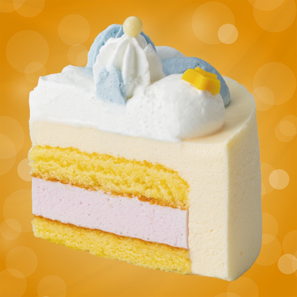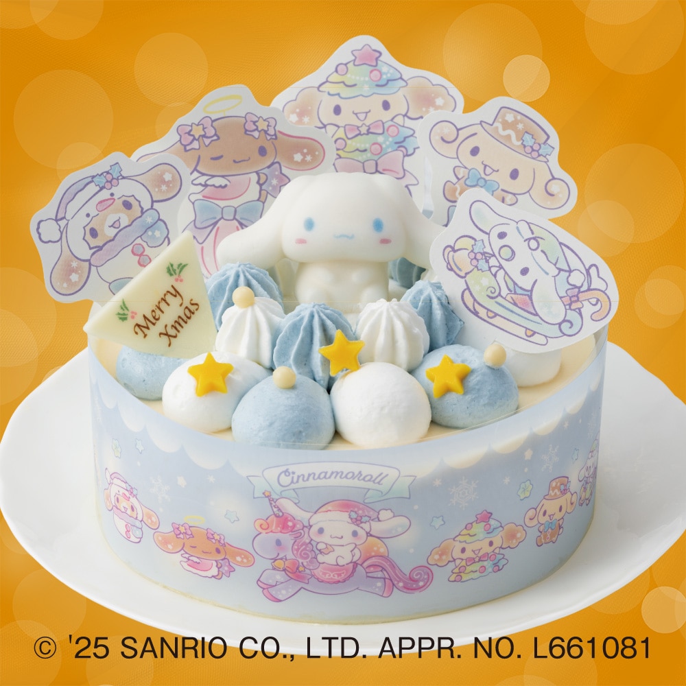 チーズムースの土台に雲をイメージしたシナモロールカラーのクリームを絞ったかわいらしいクリスマスケーキです