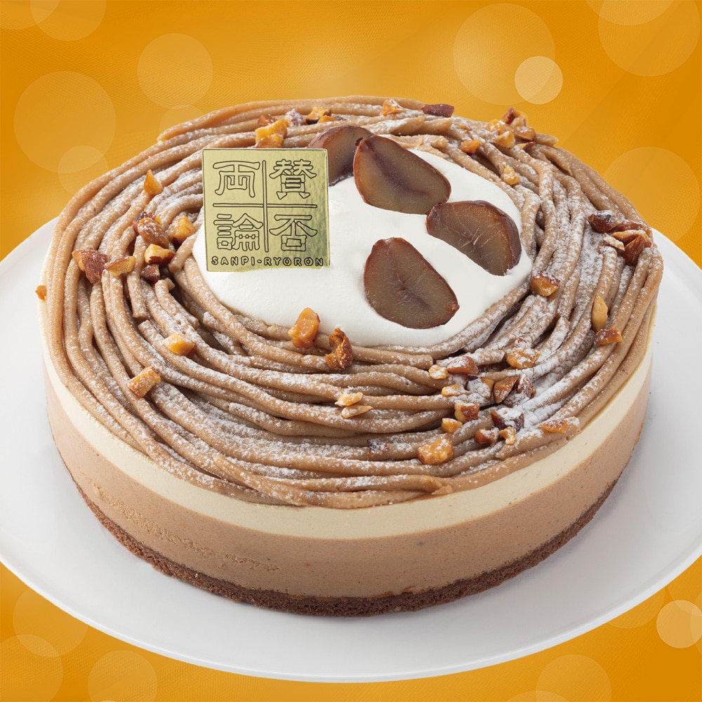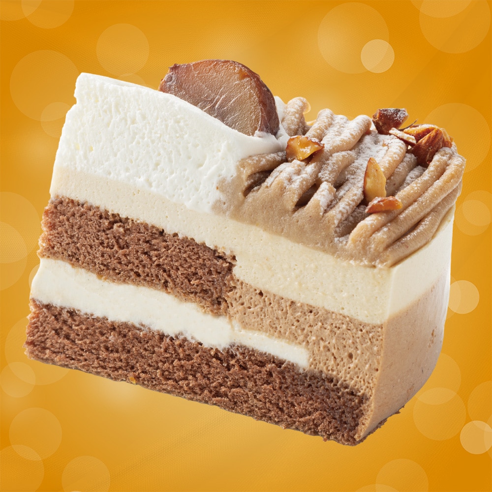 - 和栗をベースにしたマロンクリーム・ムースとヘーゼルナッツショコラムースを合 わせた和洋折衷のクリスマスケーキ。