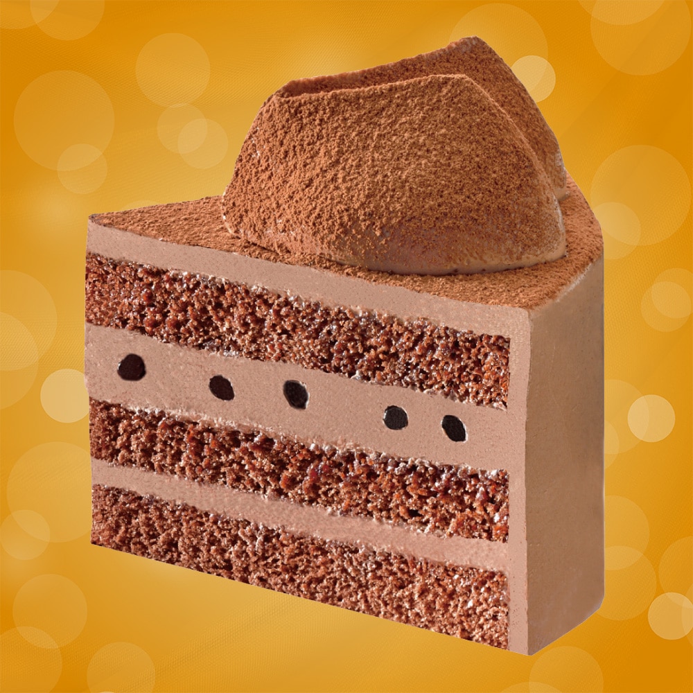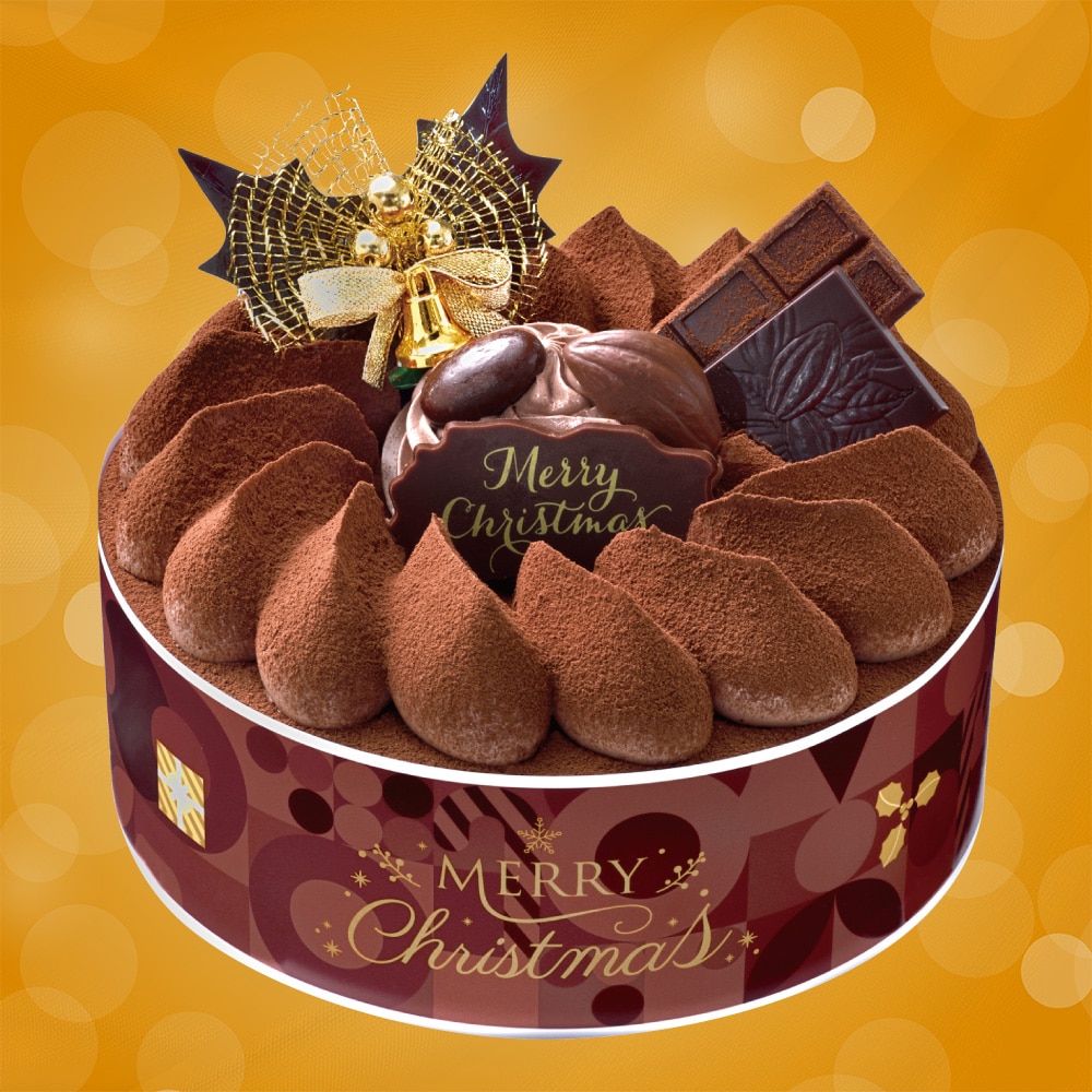 チョコチップとチョコクリームをサンドし、チョコをトッピングしたチョコづくしのクリスマスケーキです。