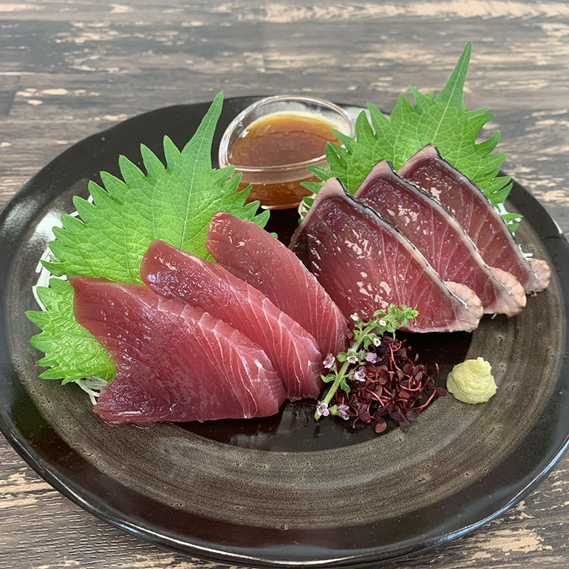 - かつお刺身170g、かつおたたき黒潮造り250g、ポン酢20g×4