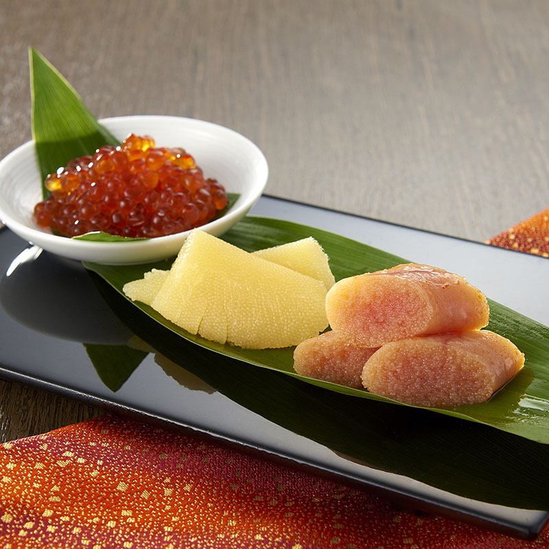 - 無着色辛子明太子160g、味付数の子80g、醤油いくら60g