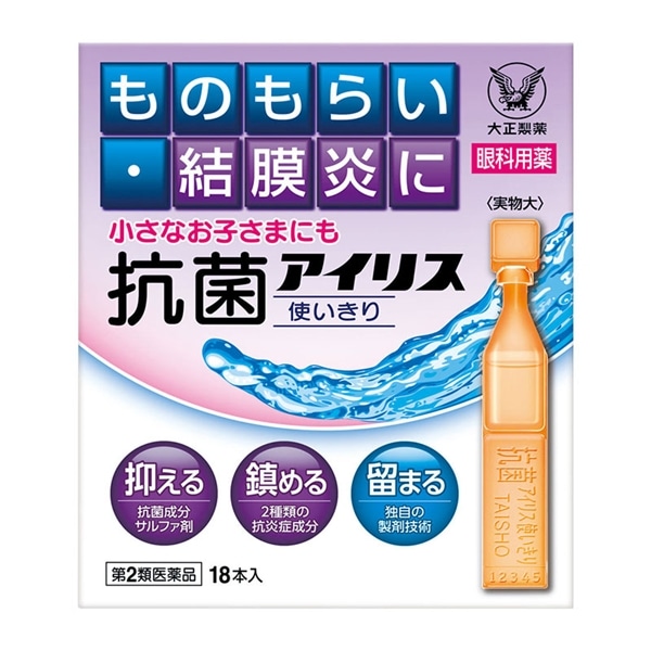 - ◆抗菌アイリス使いきりは、四種の有効成分の働きにより、ものもらい・結膜炎の原因菌の繁殖を抑え、かゆみなどの炎症を鎮め、炎症で傷ついた目の状態を改善します。