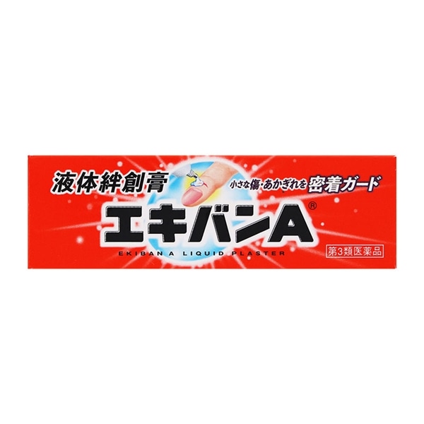 - ○液体絆創膏『エキバンA』を傷口に塗布すると、透明な被膜を形成し、外からの水やバイ菌・ホコリなどの侵入を防ぎます。