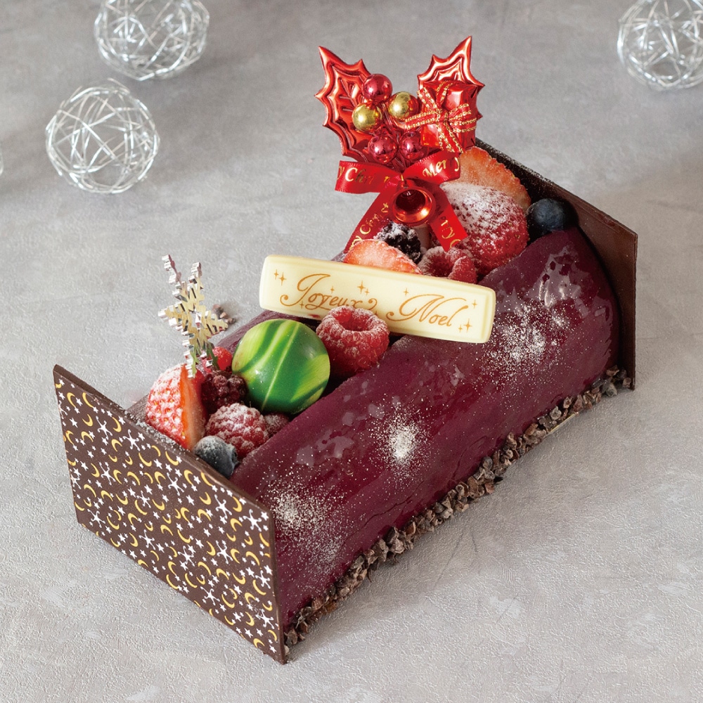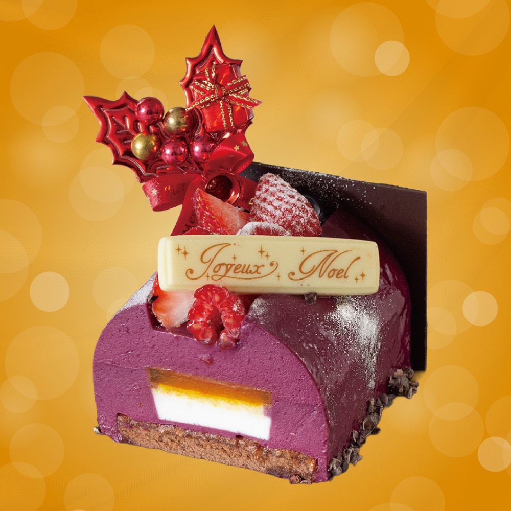- カシスムースの中にホワイトチョコとオレンジジュレを包み込み、甘酸っぱさ広がる大人向けのケーキです。