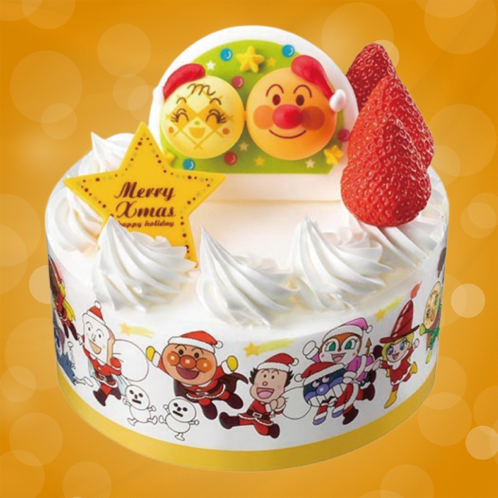 アンパンマンとメロンパンナちゃんのクリスマスデザインのケーキです。