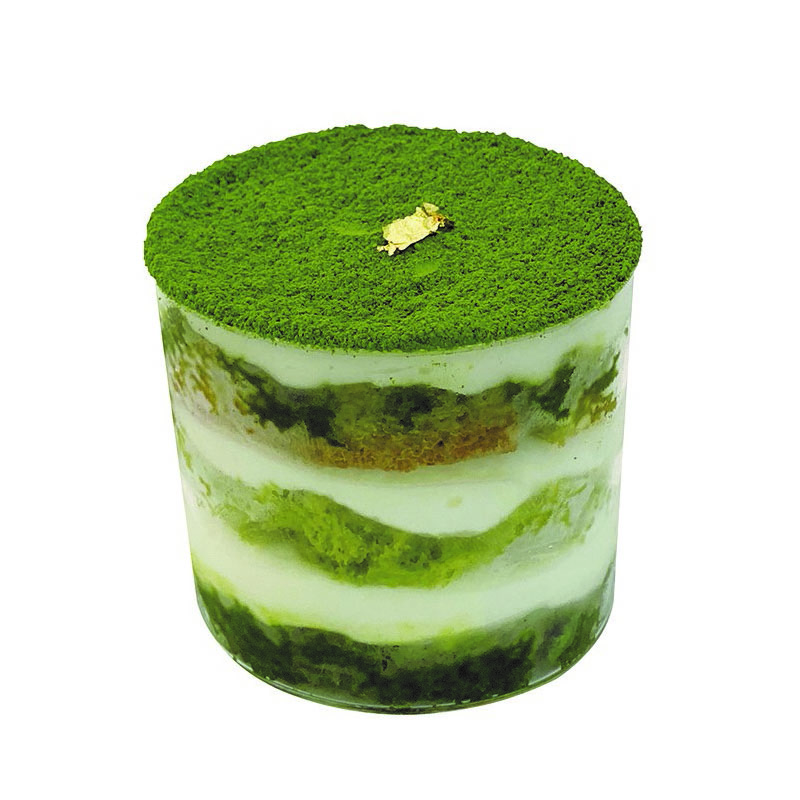 静岡産抹茶を使用したシフォンや生クリームにマスカルポーネをアレンジし抹茶シロップと追い抹茶を掛けました。