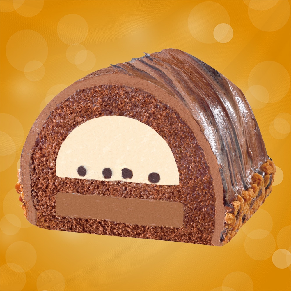 - ココアスポンジにキャラメルクリームとガナッシュ、チョコチップをサンドしたブッシュ・ド・ノエルです。