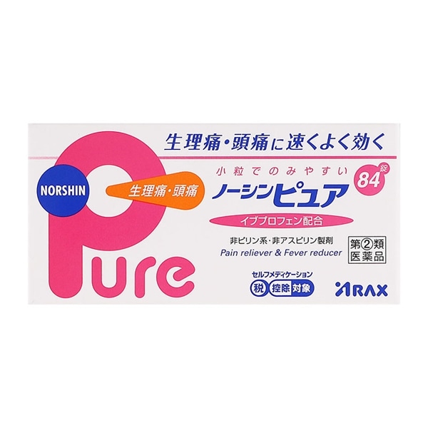 - ノーシンピュアは、痛みや熱のもとになる物質(プロスタグランジン)ができるのをすばやく抑え、すぐれた鎮痛解熱効果を発揮するイブプロフェンに、その効力を高めるアリルイソプロピルアセチル尿素と無水カフェインを配合した鎮痛解熱剤です。